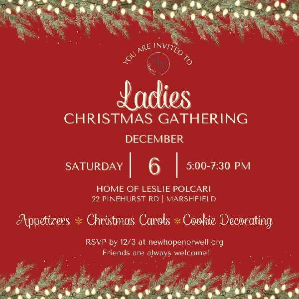 Ladies! Join us for appetizers, Christmas Carols, and cookie decorating during this wonderful time of the year. Friends are always welcome!